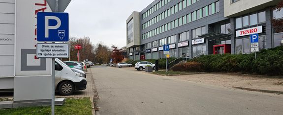 - Pirmās 30 minūtes– bez maksas, reģistrējot automašīnas valsts reģistrācijas numuru stāvvietas reģistrācijas automātā, kas atrodas ieejas vējtverī